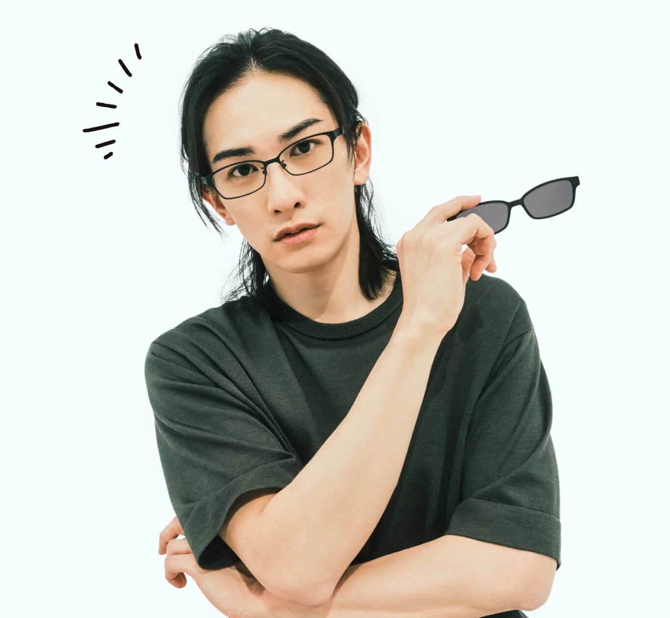 Convenient 2-way glasses that can be easily switched between sunglasses and optical glasses by simply attaching or removing the lenses.