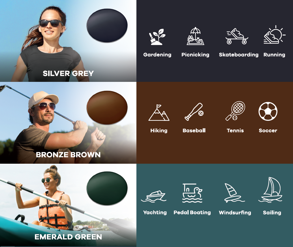 Ideal for activities such as playing golf, baseball and tennis, where improved colour contrast allows players to see the ball easily at a distance.